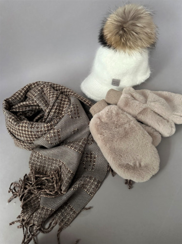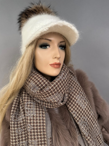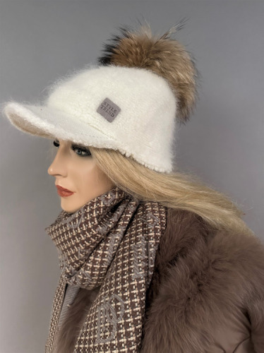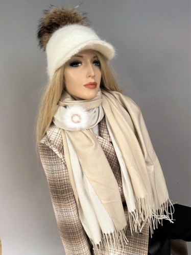 CZAPKA Z DASZKIEM ZIMOWA ŚMIETANA 2W1 ODPINANY POMPON