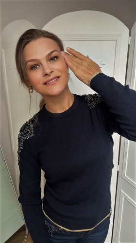 Dzianina bardzo elastyczna i miękka i nie bardzo gruba, kontrastowa lamówka ze złotą nicią, na zakończeniu dołu i rękawów.