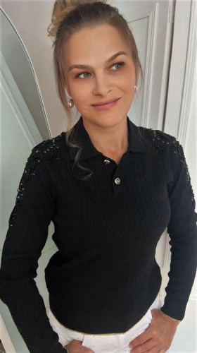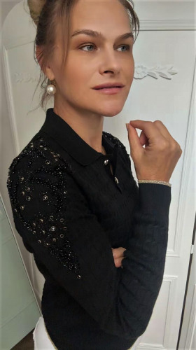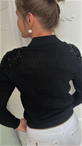 DI'SHE SWETER DZIANINOWY CZARNY POLO + ZDOBIENIE