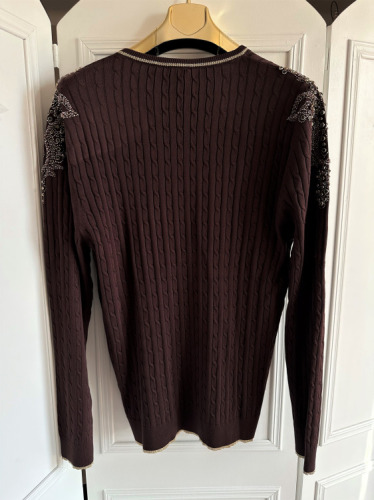 DI'SHE SWETER DZIANINOWY CZEKOLADA DEKOLT POD SZYJĘ + ZDOBIENIE STANDART