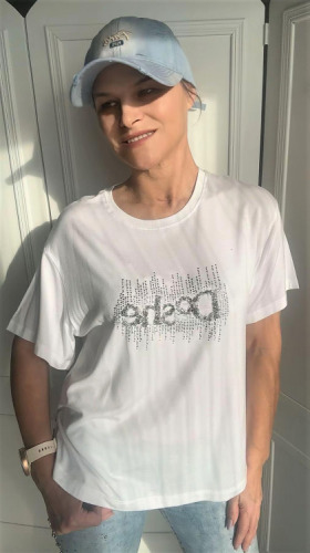 t-shirt damski Tencel, koszulka damska biała z aplikacją, t-shirt DiShe z dżetami, modny t-shirt damski