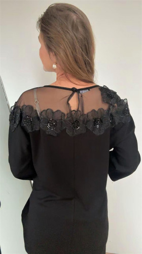 ELEGANCKA BLUZKA CZARNA EFEKTOWNY HAFT + KORALIKI