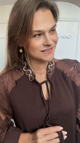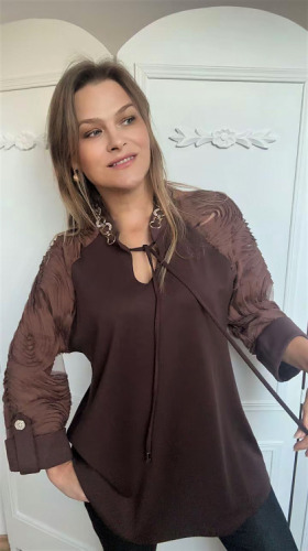 bluzka damska elegancka, bluzka czekoladowa na święta, stylowa bluzka damska 2025, bluzka koronka czekolada