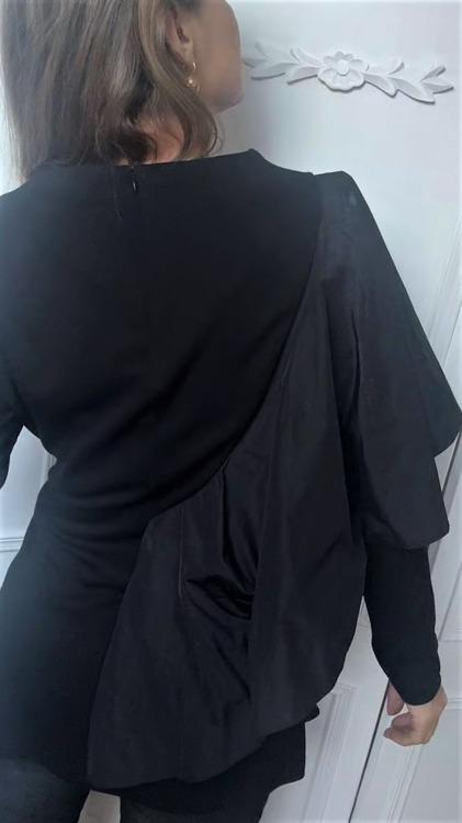 Ta czarna tunika to połączenie klasyki z nowoczesną formą – idealna dla kobiet, które kochają nieszablonowe kroje i wysmakowane detale.