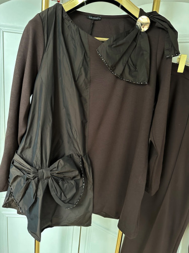 bluzka damska elegancka, brązowa bluzka z kokardami, stylowa bluzka damska 2025, bluzka gorzka czekolada