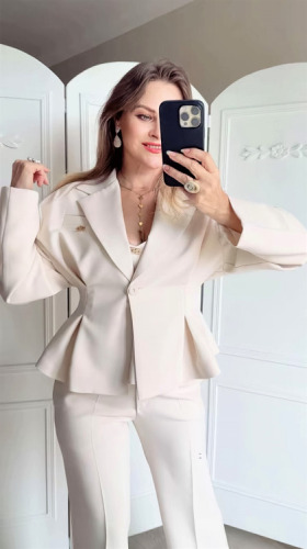 Elegancka marynarka żakiet w pastelowym odcieniu jaśniutkiego beżu