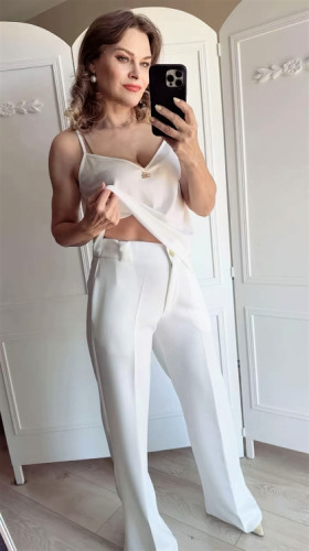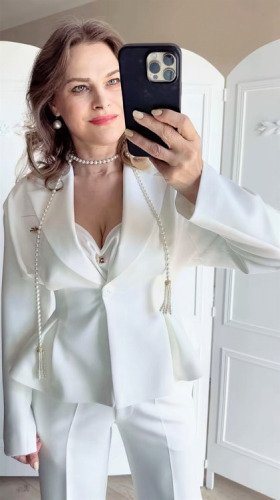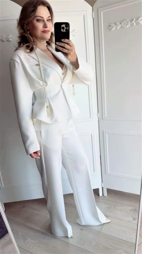 garnitur damski elegancki, biały garnitur damski La Diva Mia, damski, elegancki komplet damski, garnitur damski do pracy, stylowy garnitur damski, damski garnitur na wesele, elegancki komplet marynarka i spodnie, modny garnitur damski,