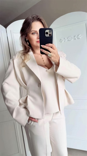 garnitur damski elegancki, pastelowy garnitur damski La Diva Mia, żółty garnitur damski, elegancki komplet damski, garnitur damski do pracy, stylowy garnitur damski, damski garnitur na wesele, elegancki komplet marynarka i spodnie, modny garnitur damski, garnitur damski pastelowy