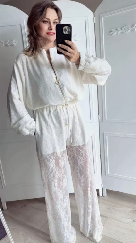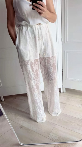 Koronkowe spodnie, białe szerokie spodnie LaDivaMia