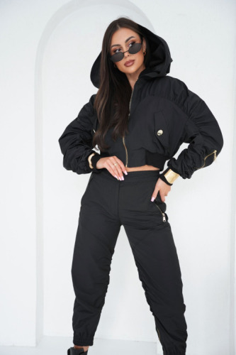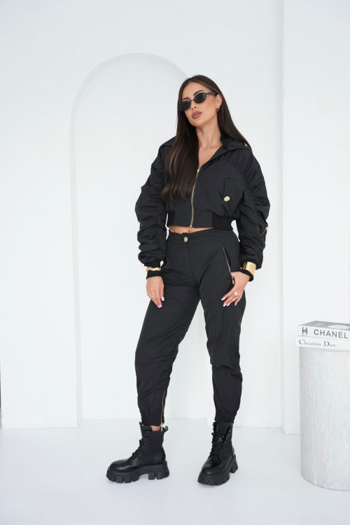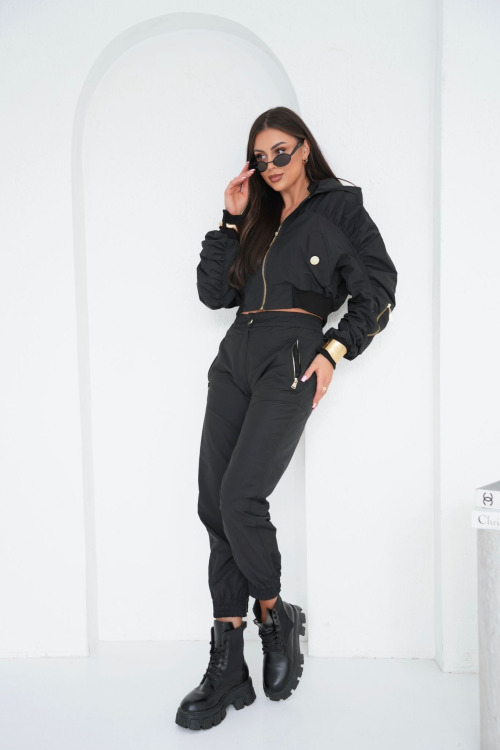 Czarne spodnie bojówki z ekspresami
