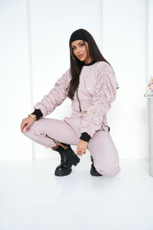 pudrowe spodnie damskie, spodnie damskie bojówki, spodnie pudrowy róż, spodnie marszczone, spodnie z ekspresami, pudrowe bojówki damskie , modne pudrowe spodnie damskie , spodnie streetwear damskie, spodnie sportowe pudrowy róż z zamkami, spodnie na wiosnę