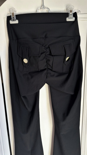 marszczenie z tyłu zbiera w efektowny push up a kieszenie ze złotymi guzikami wypełniają tą część - nie przesadnie