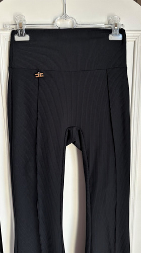 La Diva Mia SPODNIE CZARNE Z ROZSZERZANĄ NOGAWKĄ TKANINA PRĄŻEK