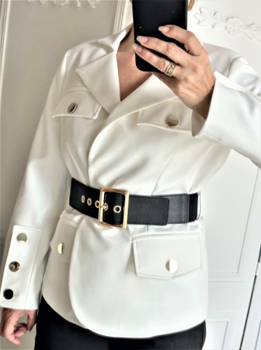 Zgrabna marynarka z dodatkami złota od polskiego producenta, w komplecie szeroki pas