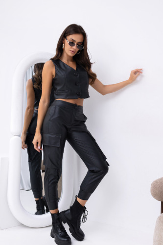 La Diva Mia ZGRABNE SPODNIE BOJÓWKI SKÓRA EKOLOGICZNA
