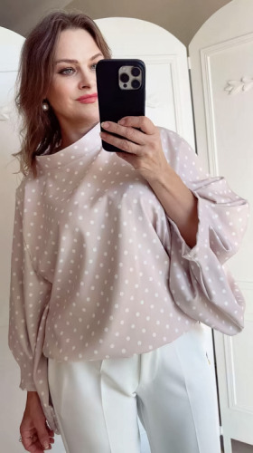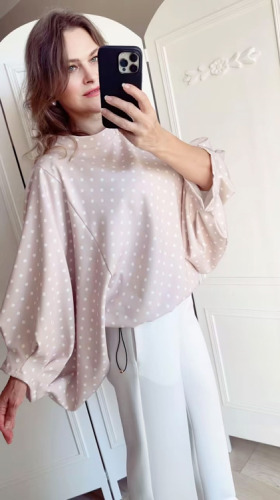 Bluzka damska oversize, elegancka bluzka, bluzka w groszki grochy kropki, Bluzka Lavestino