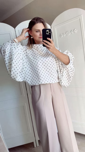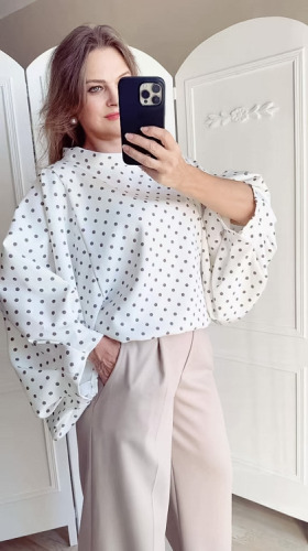 Bluzka damska oversize, elegancka bluzka, bluzka w groszki grochy kropki, Bluzka Lavestino