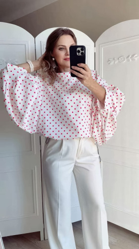 Bluzka damska oversize, elegancka bluzka, bluzka w groszki grochy kropki, Bluzka Lavestino