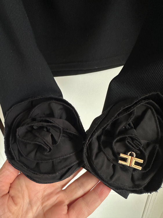 Rękawy wykończone przyszytymi różami z tkaniny tafta + złota elizabetka
