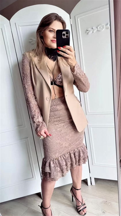 Polecamy do zestawu żakiet w wersji dłuzszej lub krótszej w tym samym odcieniu oraz wzorze koronki