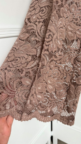 LAVESTINO SPODNIE DZWONY KORONKOWE BEŻOWE TAUPE