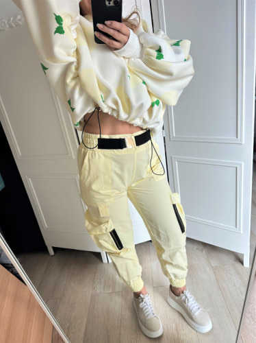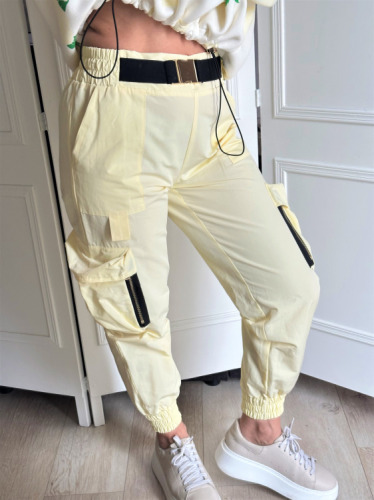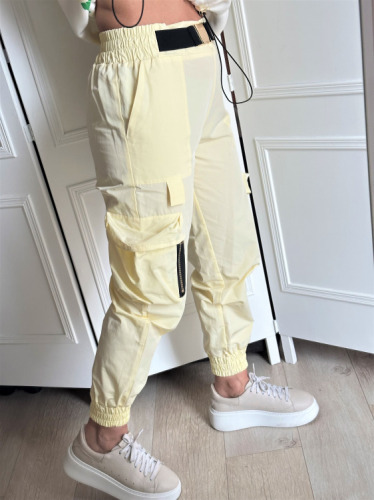 spodnie damskie LAVESTINO , spodnie bojówki wiosenne , cytrynowe spodnie damskie, spodnie streetwear, modne spodnie damskie, moda2026
