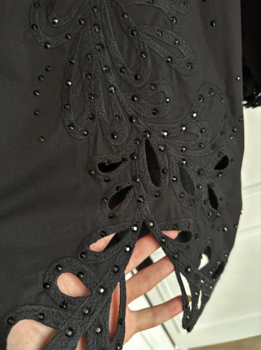 Czarna koszula bawełniana z haftem i ażurowymi zdobieniami