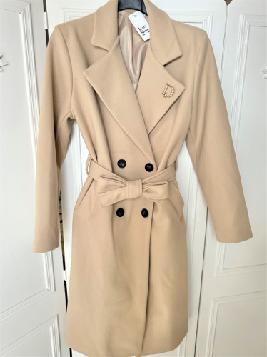 PŁASZCZ WIOSENNY TRENCH Z BROSZKĄ WIĄZANY ROZMIAR UNIWERSALNY