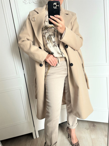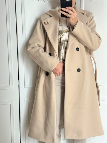 Płaszcz z kolekcji wiosennej przewiązywany paskiem