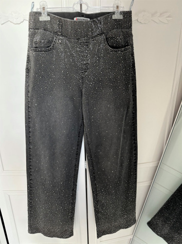 Jeansy Zanessi spodnie damskie z kryształkami, jeansy damskie z cyrkoniami, eleganckie jeansy damskie, spodnie grafitowe damskie, spodnie z błyskiem, jeansy na wieczór, modne spodnie damskie 2026, spodnie wyszczuplające damskie, spodnie z wysokim stanem damskie, jeansy premium damskie