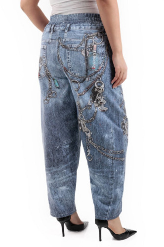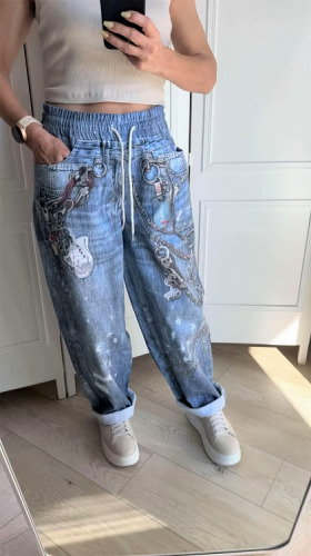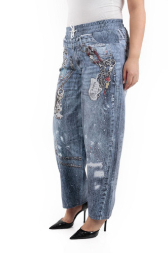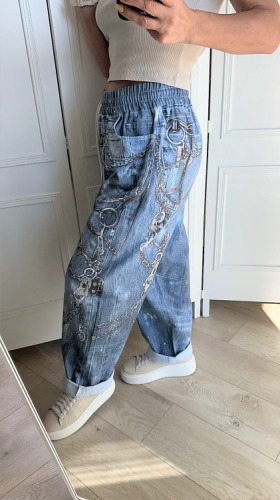 ZANESSI LUŻNE NIEBIESKIE SPODNIE Z BAWEŁNY + ORYGINALNY NADRUK